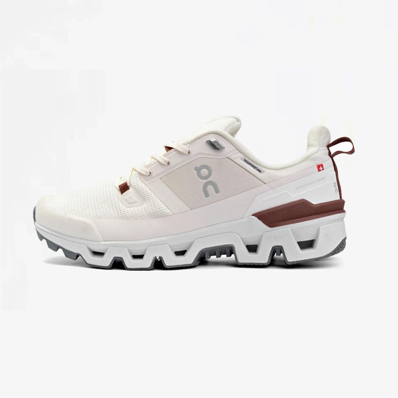 A pair of durable trail shoes from Swiss running label On, made from an upper of a 25% recycled blend of polyester mesh, canvas and ripstop, sitting over a waterproof membrane with TPU reinforcements to the the heel, toe and foxing tape for added structure and resistance. They have a moulded PU sockliner and sit on a CloudTec foam midsole for shock-absorption, with a MissionGrip tread for support and Speedboard technology to help turn impact into bounce. Branding is simple with reflective logos to the tongue, sides and heel. Ripstop/mesh uppers Waterproof membrane Padded textile lining Moulded PU sockliner TPU foxing tape/toe CloudTec foam midsole MissionGrip tread Reflective logos