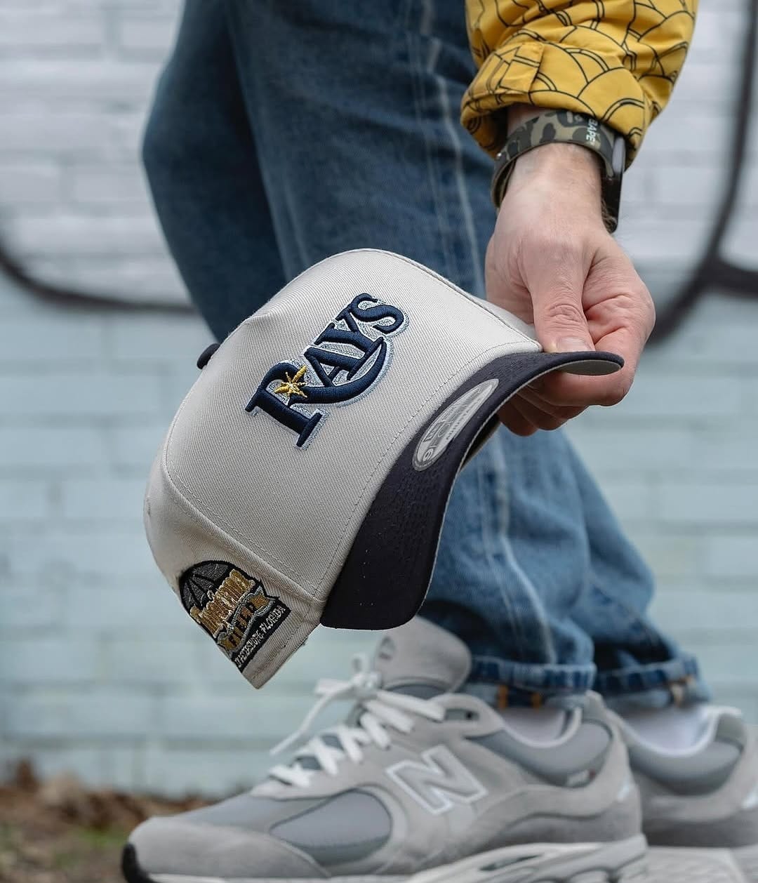 Conçue dans un mélange de gris clair et bleu marine, elle se distingue par sa broderie 3D du logo “RAYS” sur la face avant et son patch latéral Tropicana Field – St. Petersburg, Florida, rendant hommage à l’équipe mythique de la MLB.